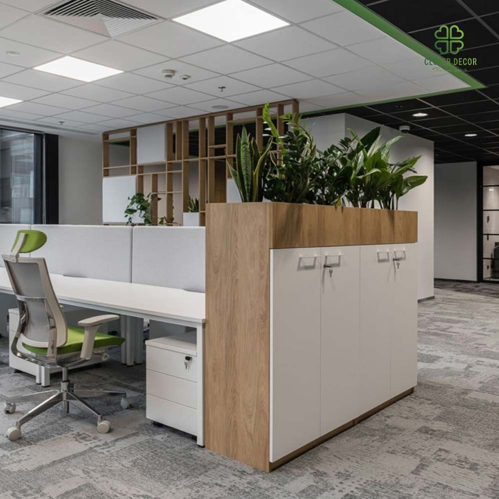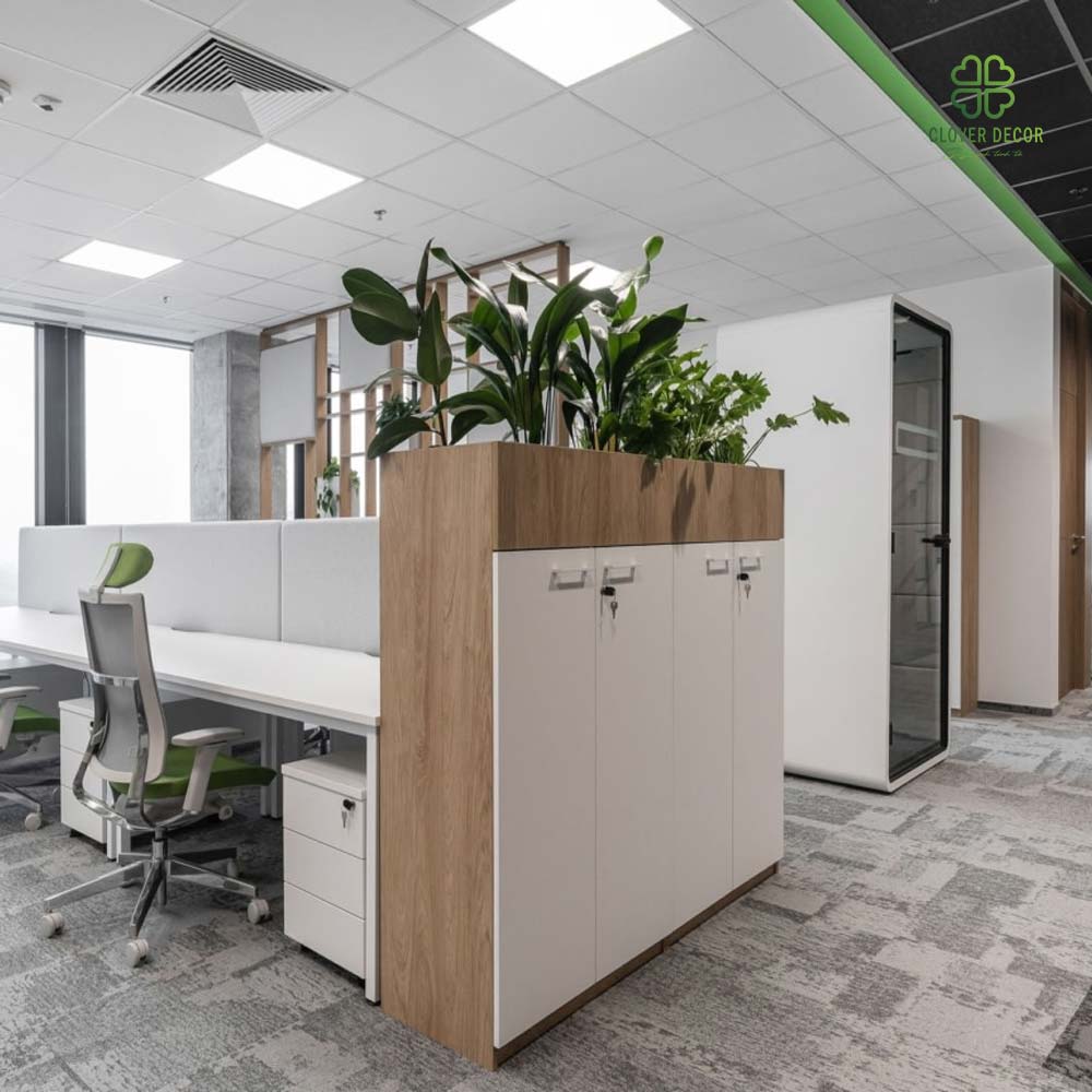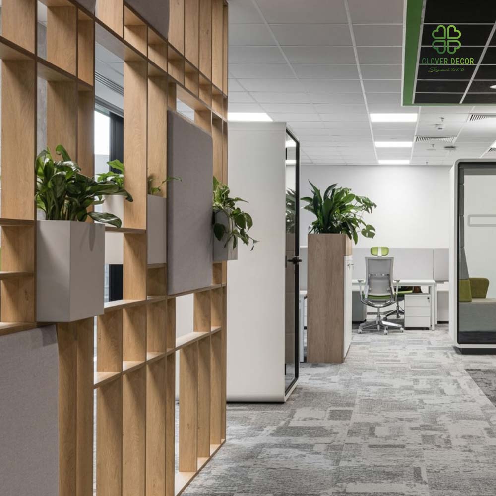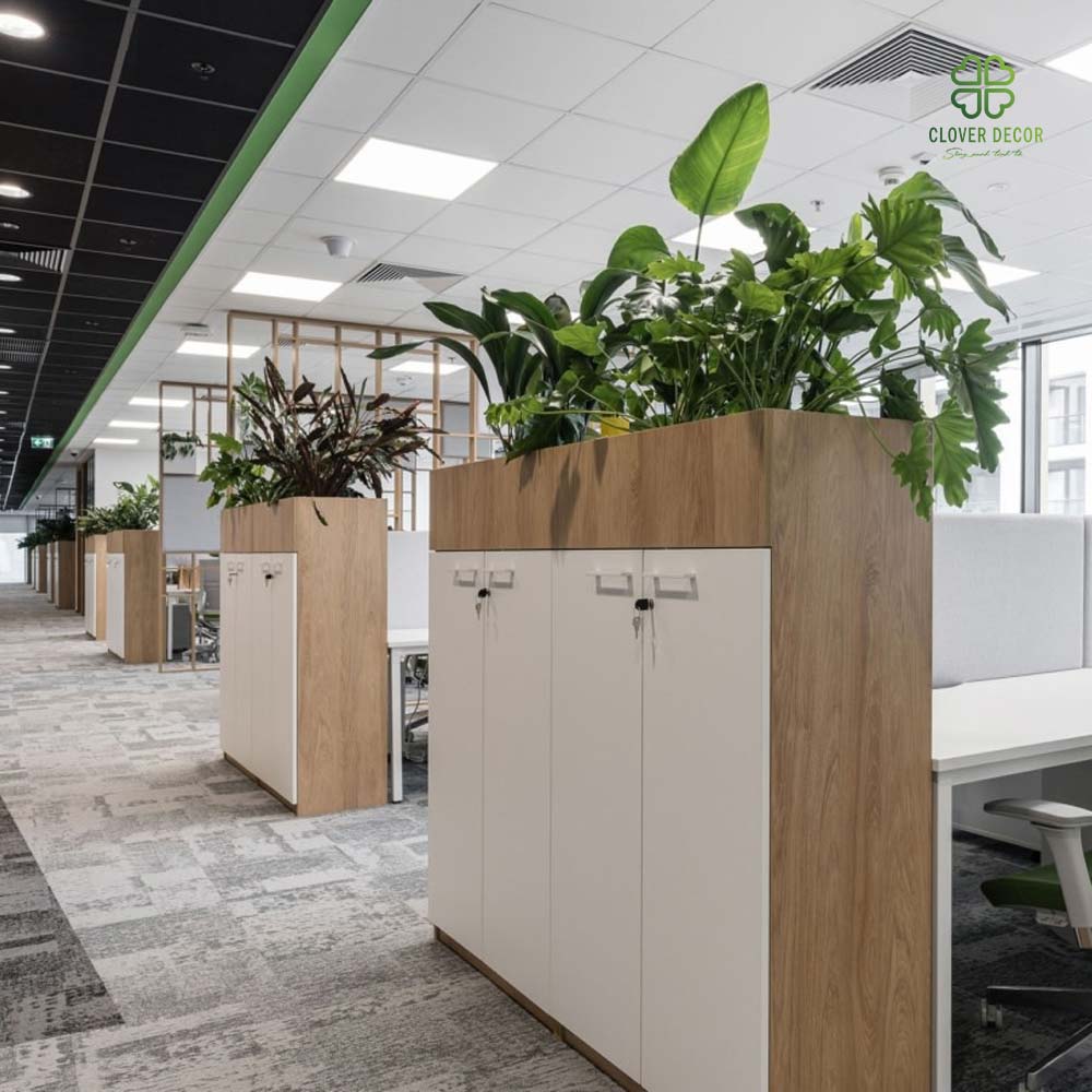 Làm việc trong một không gian toàn máy tính và giấy tờ dễ khiến nhân viên rơi vào trạng thái mệt mỏi. Clover Decor mang đến dịch vụ thi công bồn cây giả decor văn phòng giúp “xanh hóa” nơi làm việc, nâng cao năng suất và cảm hứng sáng tạo.