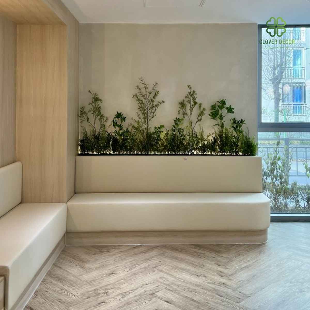 Clover Decor vừa hoàn thiện hệ thống bục cây giả cho nhiều chuỗi trà sữa lớn, mang đến diện mạo hoàn toàn mới, thu hút lượng khách hàng tăng đáng kể nhờ không gian xanh thân thiện.